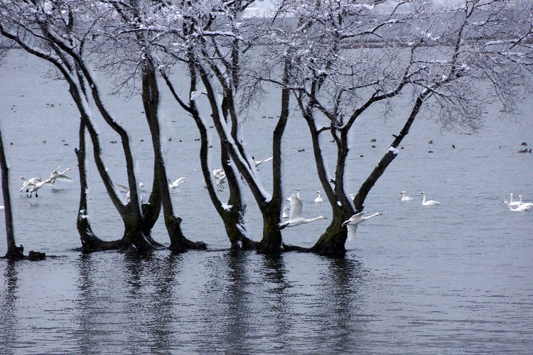 コハクチョウがやって来て創る冬景色