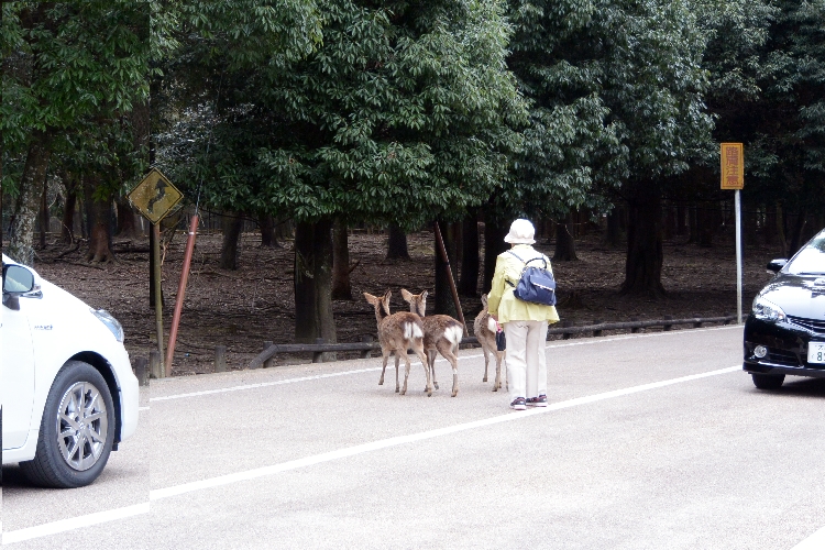 車を止めて、おばちゃん止めて、ここは「鹿」優先!