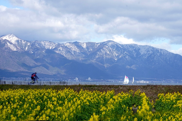 箱館山・ヨット・菜の花、冬の散策