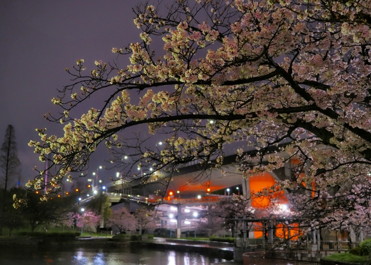 雨の宵桜