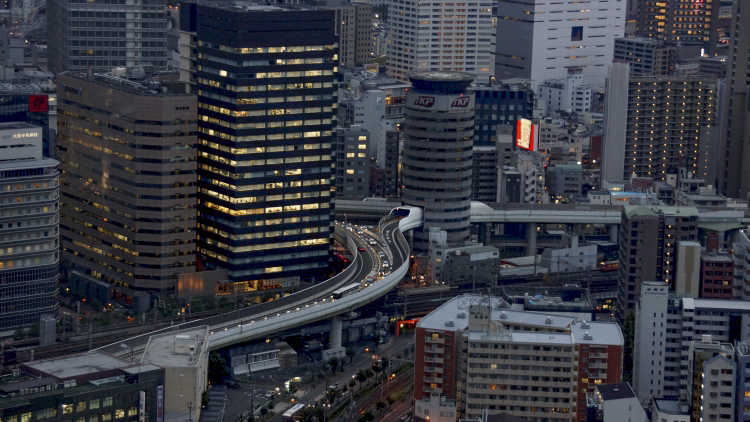 ビルを貫く道路